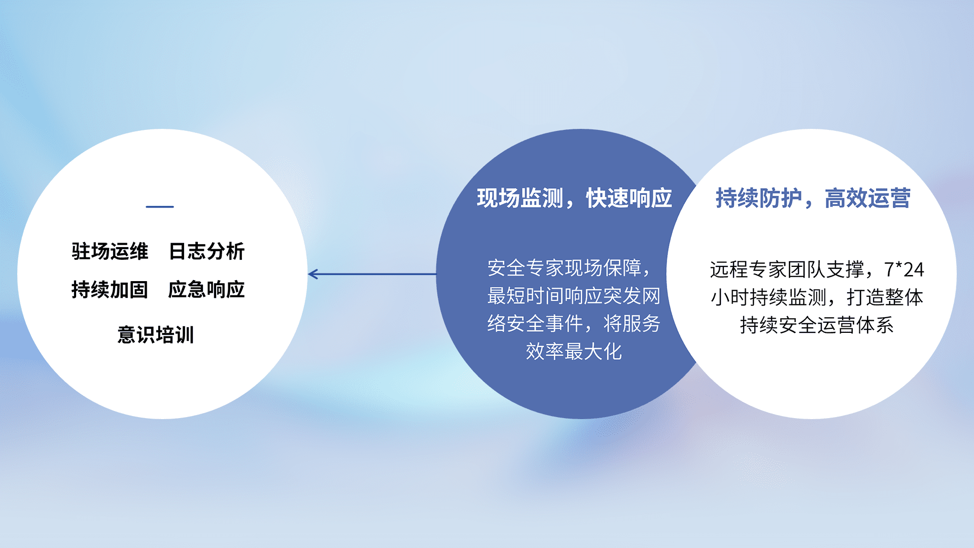 7X24小时持续监测安全事件,保持安全策略有效性,降低资产脆弱性风险,,,精准拦截黑客攻击,,减少被黑客利用的机会,,,,第一时间遏制,,降低损失。。。